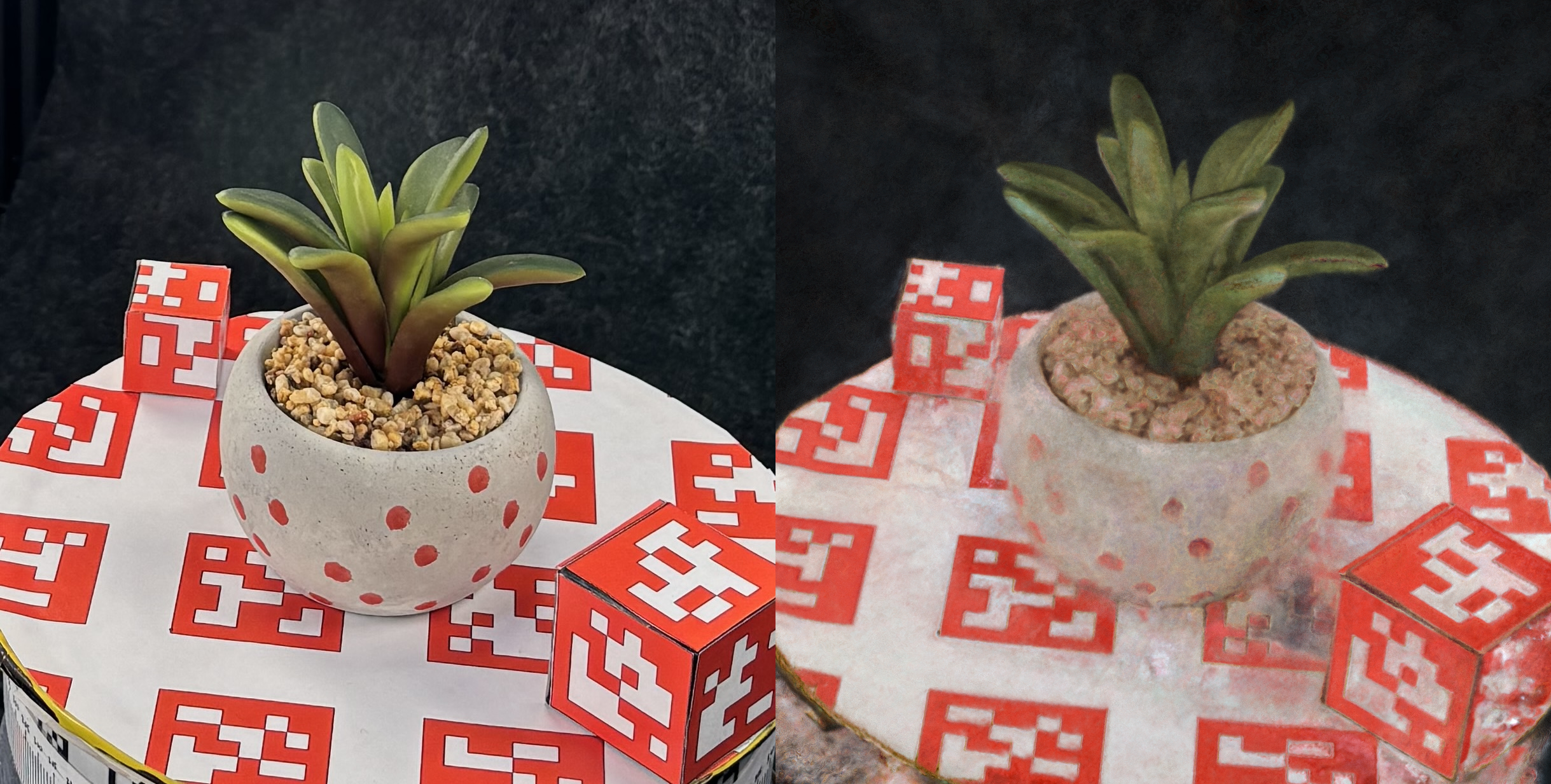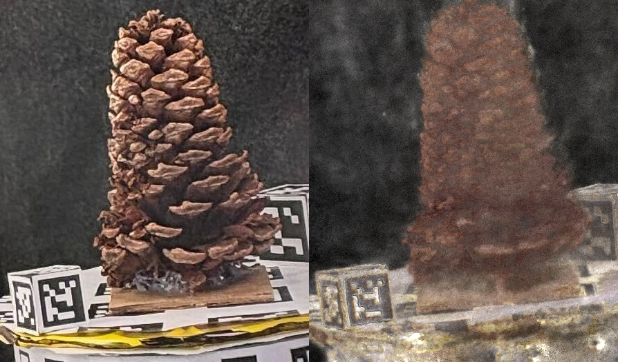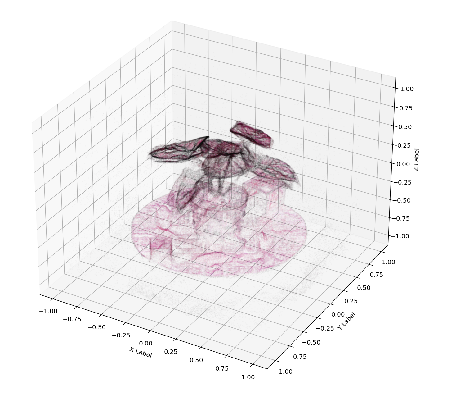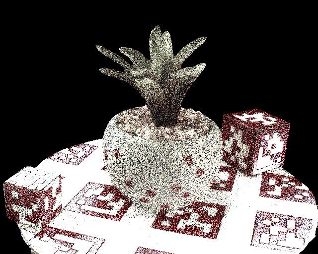 Finally, we can also export the NeRFs to point clouds to verify that their 3D structure is reasonable. Shown below are screenshots of the point clouds for Anacampseros (left) and Caladium (right)